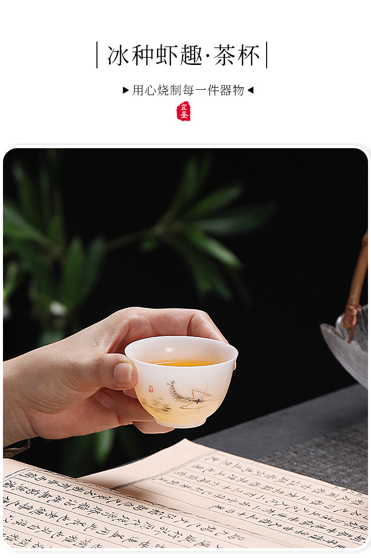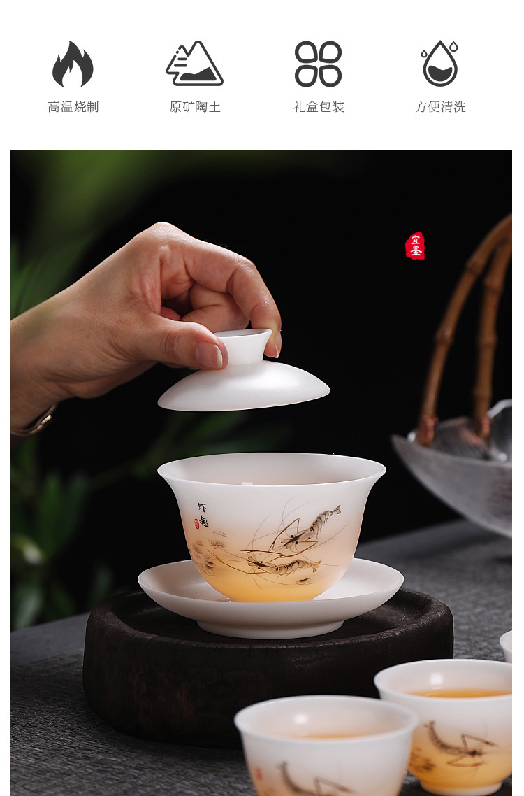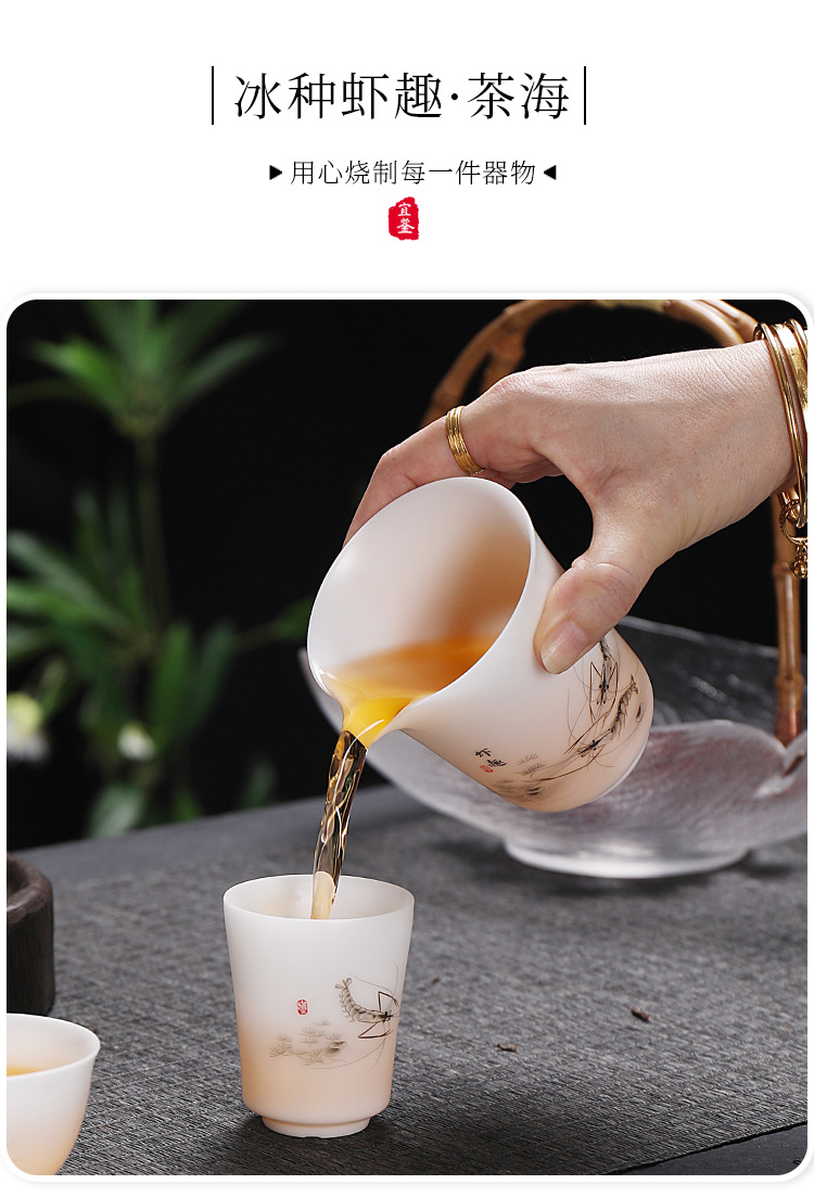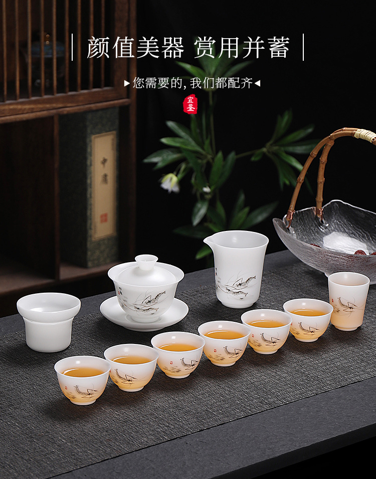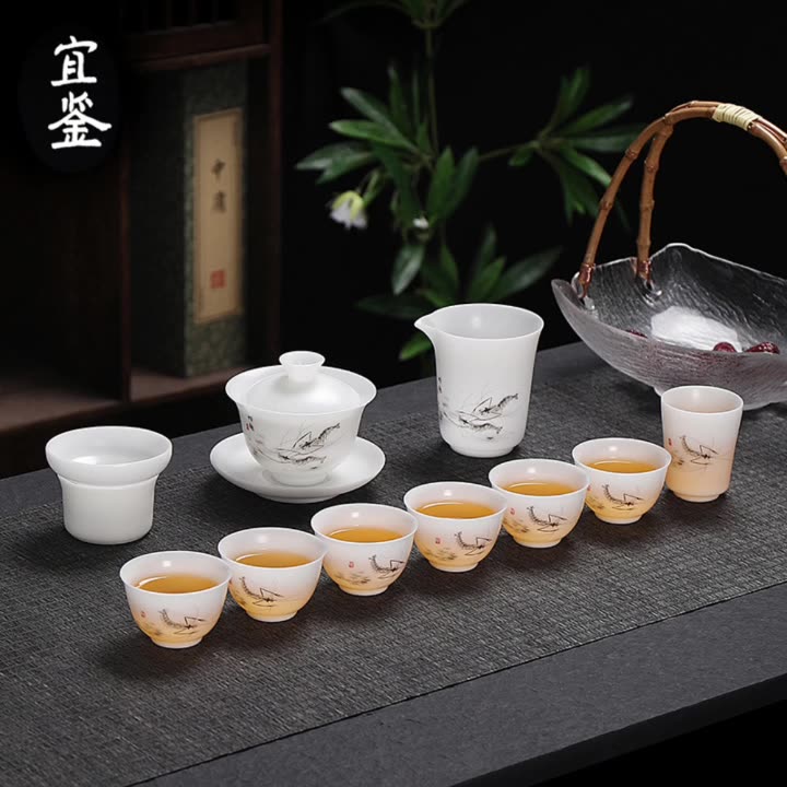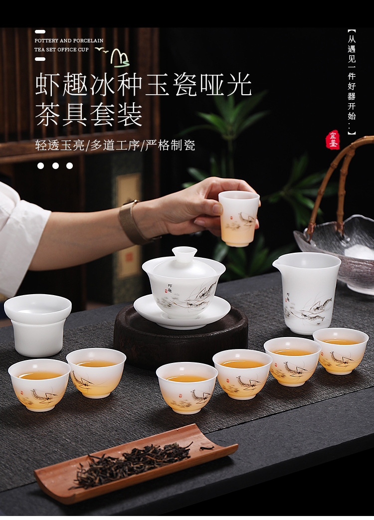 9178228宜鉴冰种玉瓷茶具套装虾趣素烧哑光白瓷功夫茶具商用家用轻奢礼品支持定制图画