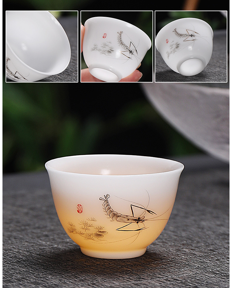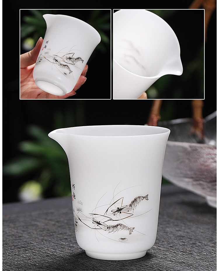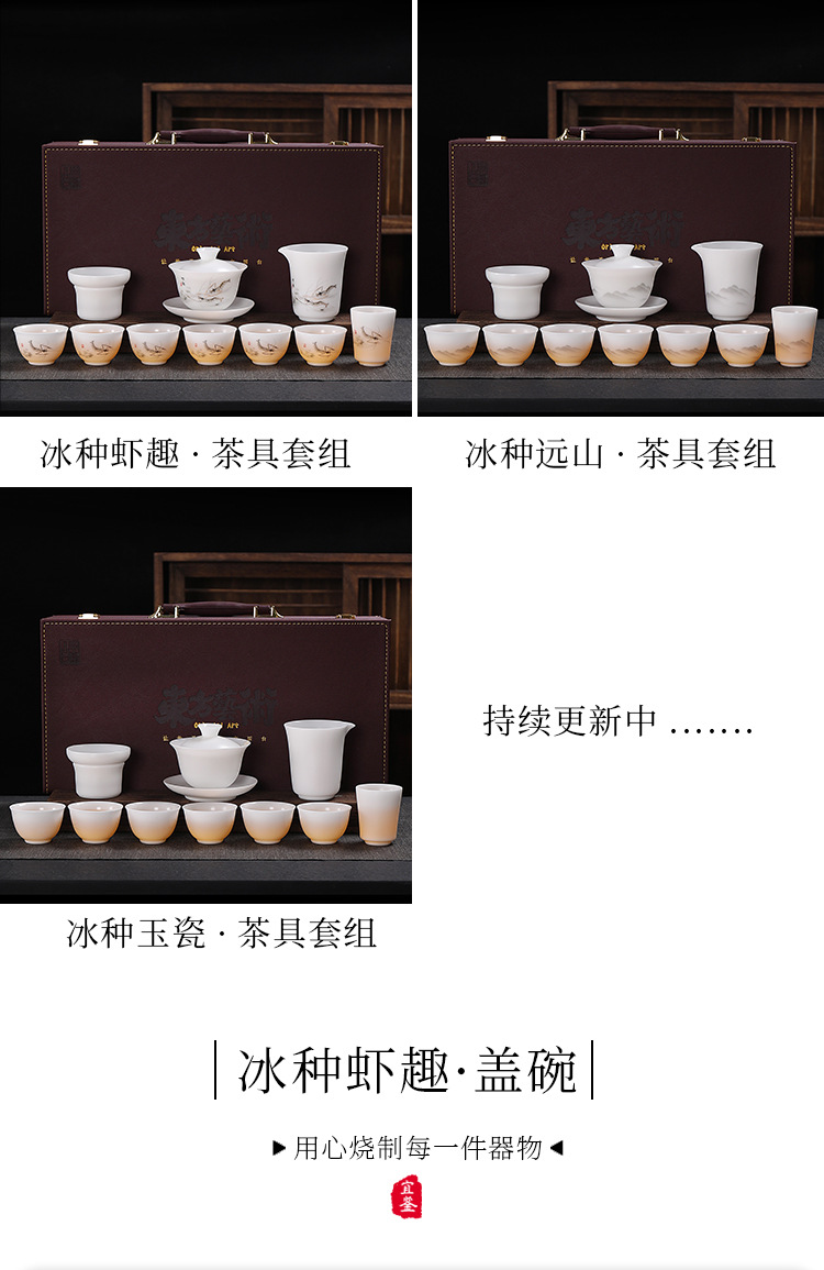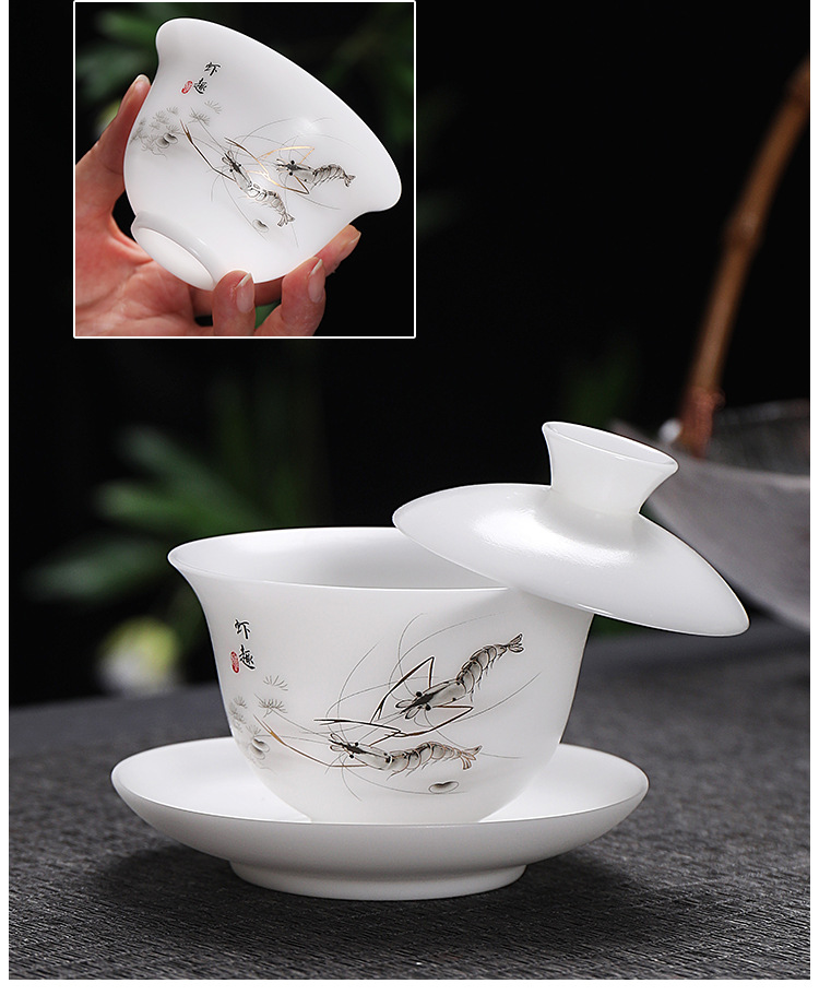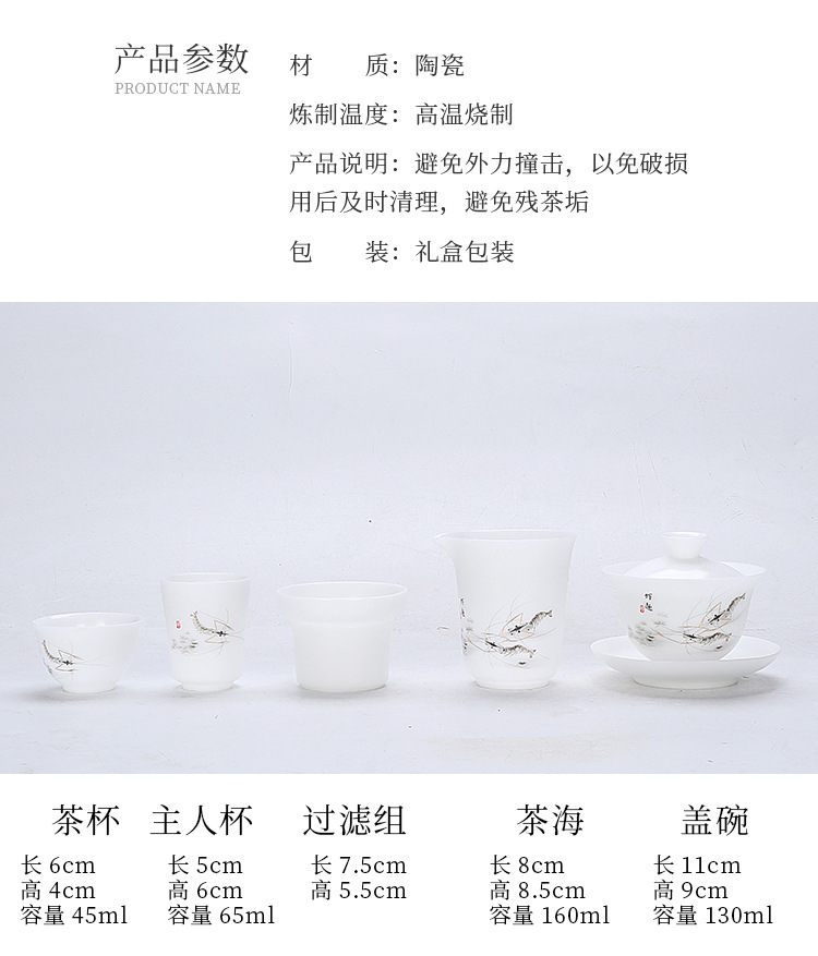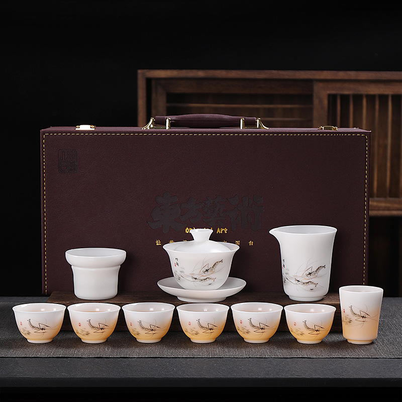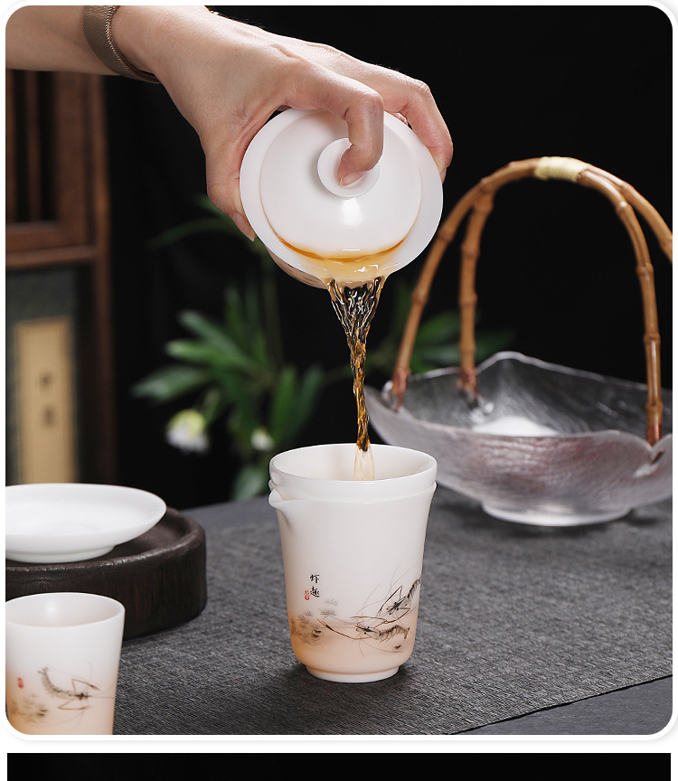 9178228宜鉴冰种玉瓷茶具套装虾趣素烧哑光白瓷功夫茶具商用家用轻奢礼品支持定制图画
