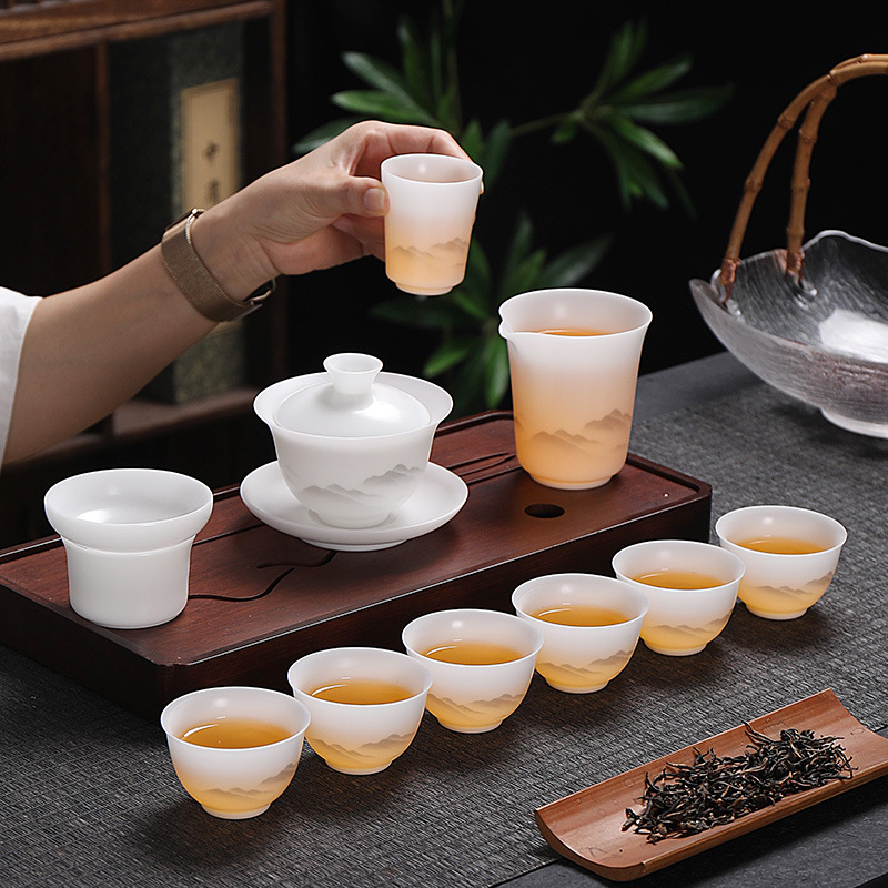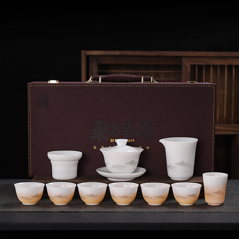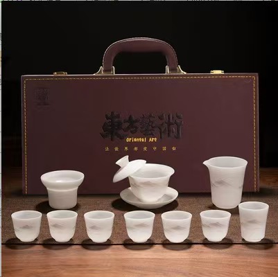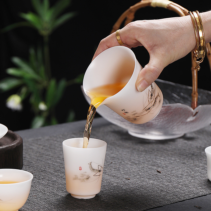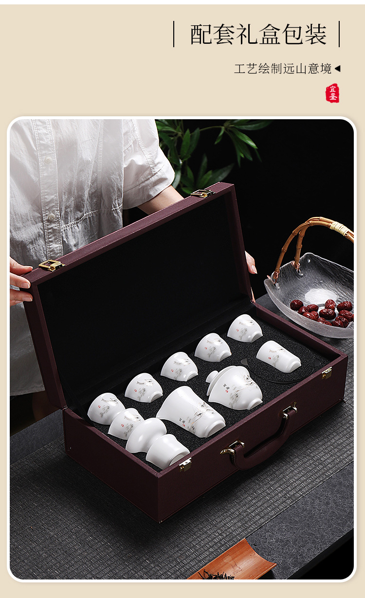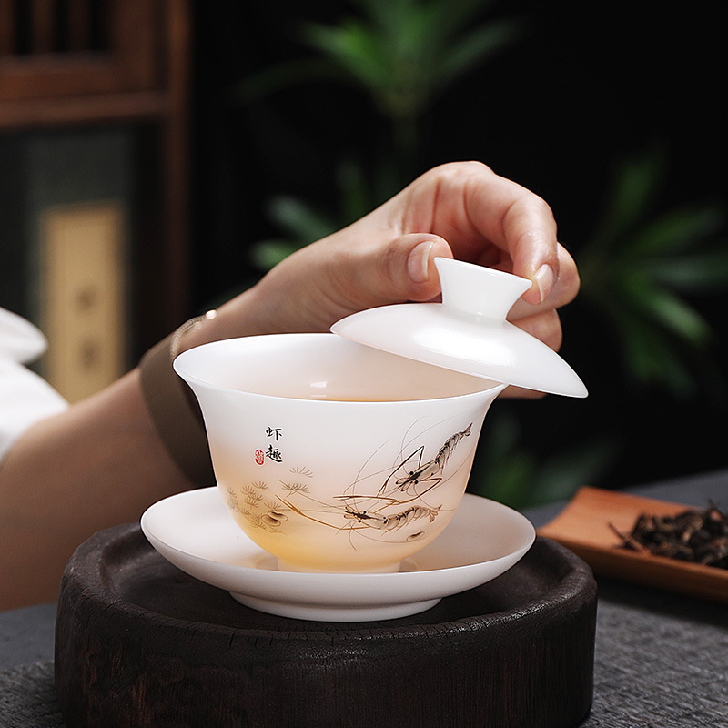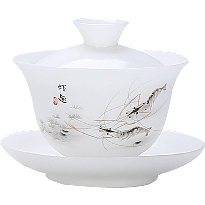 9178228宜鉴冰种玉瓷茶具套装虾趣素烧哑光白瓷功夫茶具商用家用轻奢礼品支持定制图画