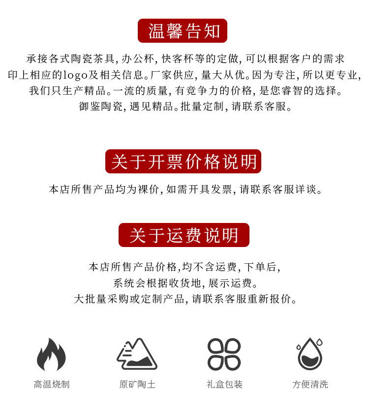 | 陶瓷款式(Ceramic style) | 无争如意杯, 无争风铃杯, 纯白, 虾 趣 |